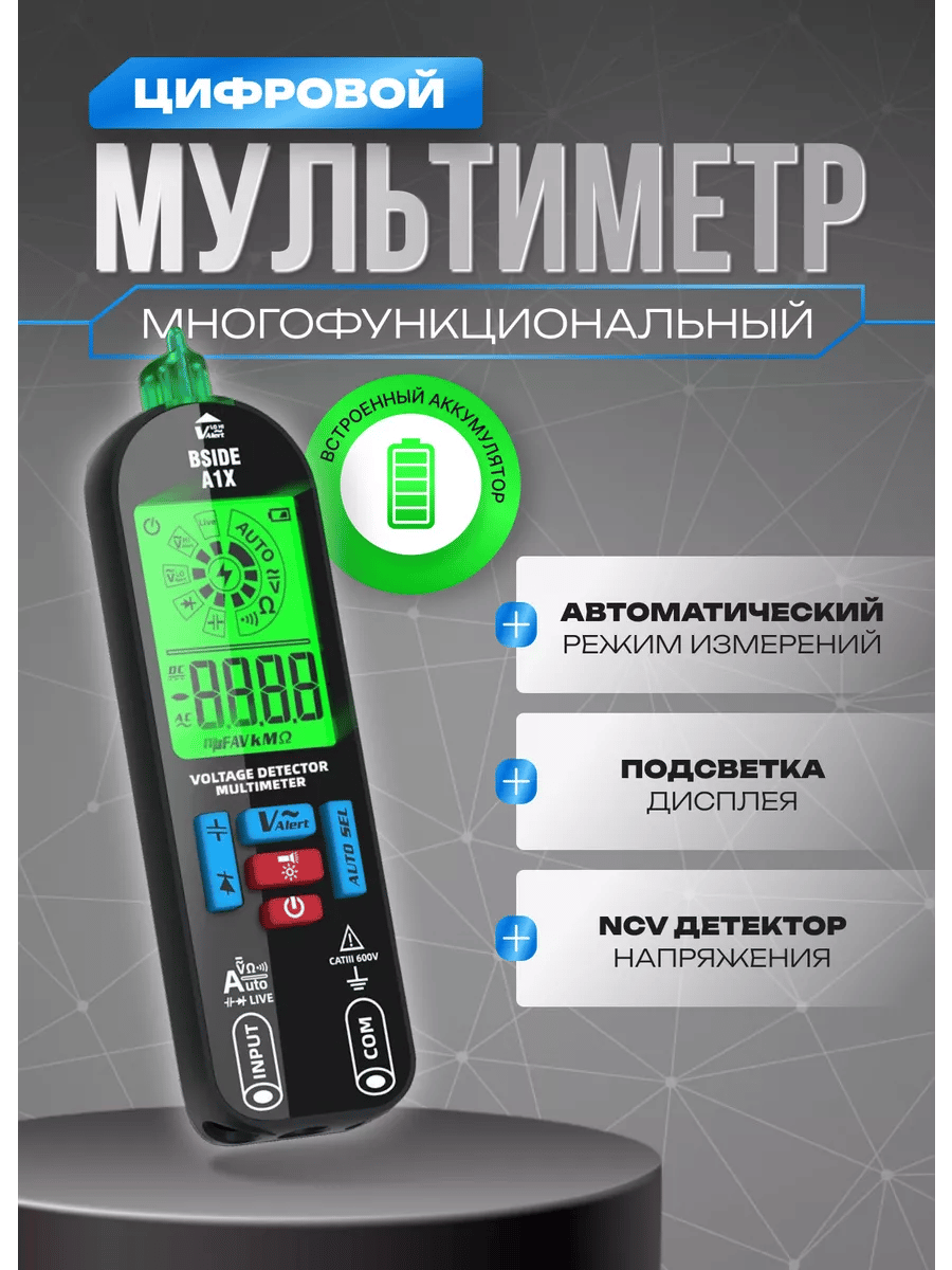 Мультиметр цифровой автоматический и тестер напряжения NCV